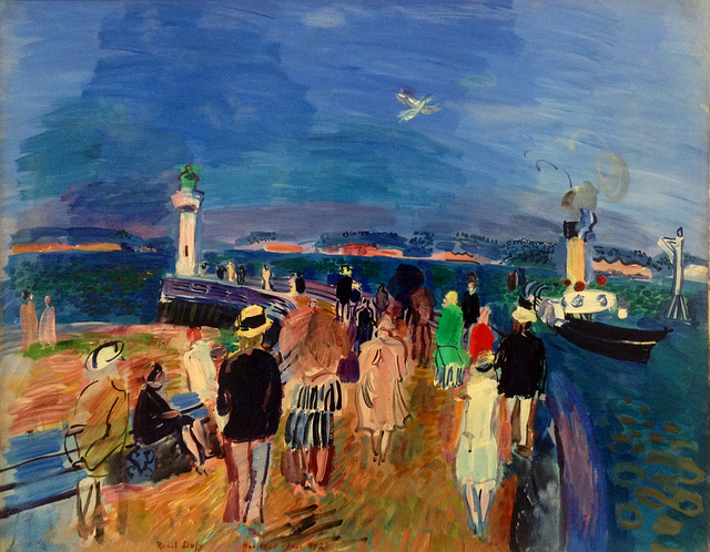 Considered by critics a ‘born colourist’, this painting by Raoul Dufy is brimming with the vitality and movement at the heart of the modernist aesthetic. The energy is all in the colour, and the painting is a fitting dedication to the instrumental moment that inspired Dufy’s artistic skill. Dufy had been standing on the jetee of Honfleur when a girl in a red dress suddenly ran past him, and the vision sparked an epiphany: he suddenly realised the more powerful and lasting impression of colour, rather than that of shape or form, for creating movement in art.