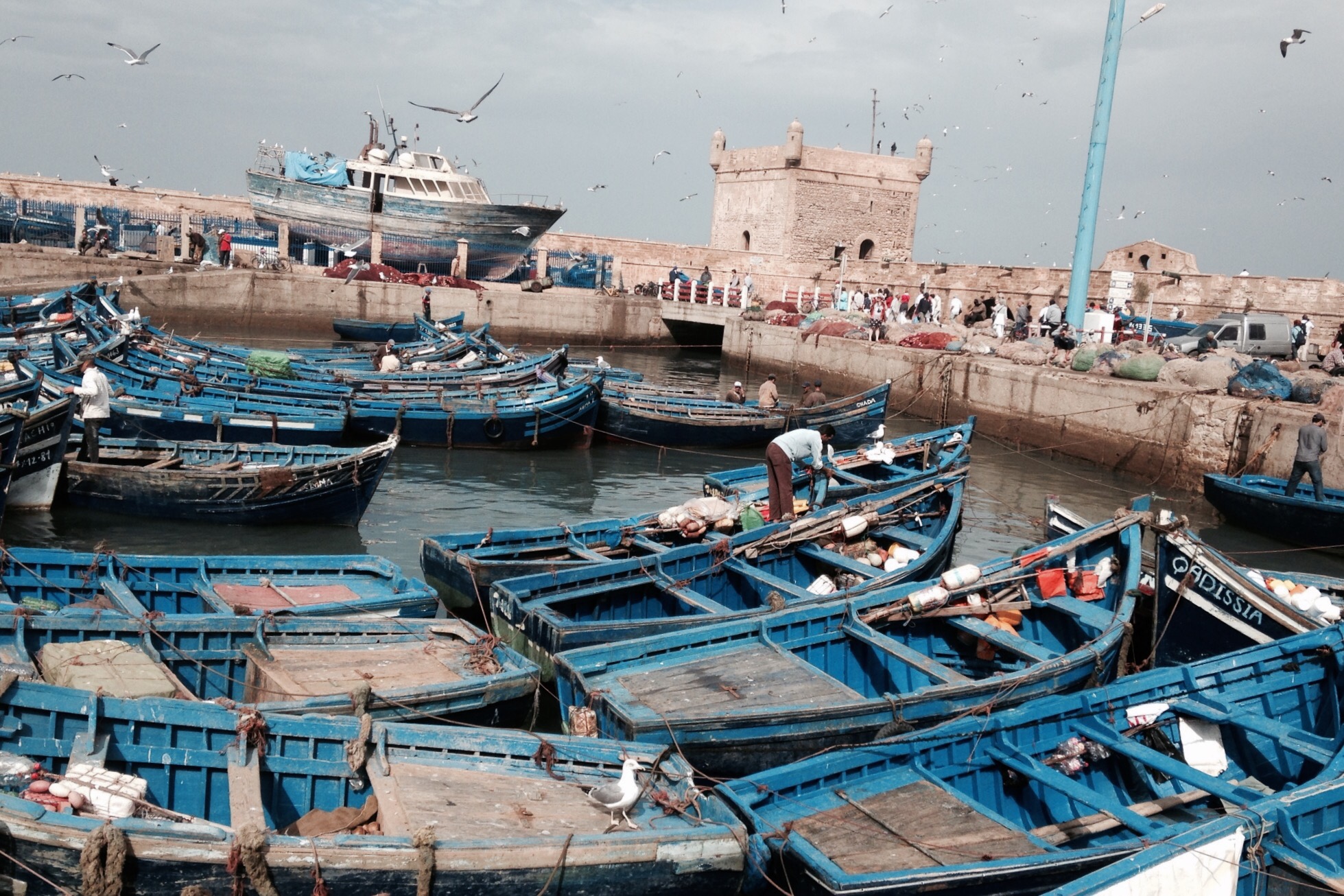 What makes Essaouira so distinctive is the diverse background of cultures that have converged in its identity. Aside from the pre-existing population of Berbers, Africans and Arabs, the city came to prosper after the arrival of Jewish traders during the 17th and 18th centuries. More crucially, it was also at this time that the sultan ordered the city to be designed and built by a Frenchman, who based his architectural plan on the town of St Malo in Brittany. The fortifications in particular adopt the style of European fortresses, giving Essaouira an unlikely Western aesthetic.